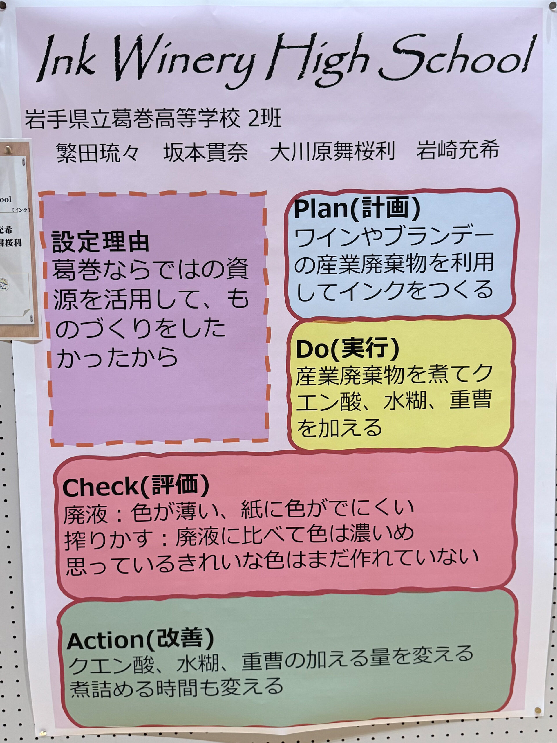 インク班の生徒たちも、残りの総合的な探究の授業時間も改善に取り組んでいきたいと感想を持ってくれたようです。